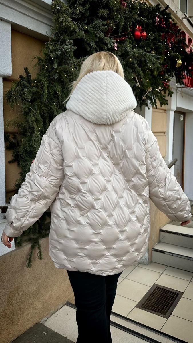 Пуховик бежевый эко пух от 38 по 48