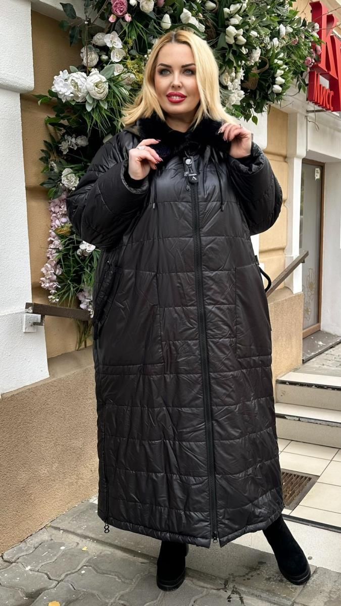 Пуховик длинный, воротник-мех 50-60