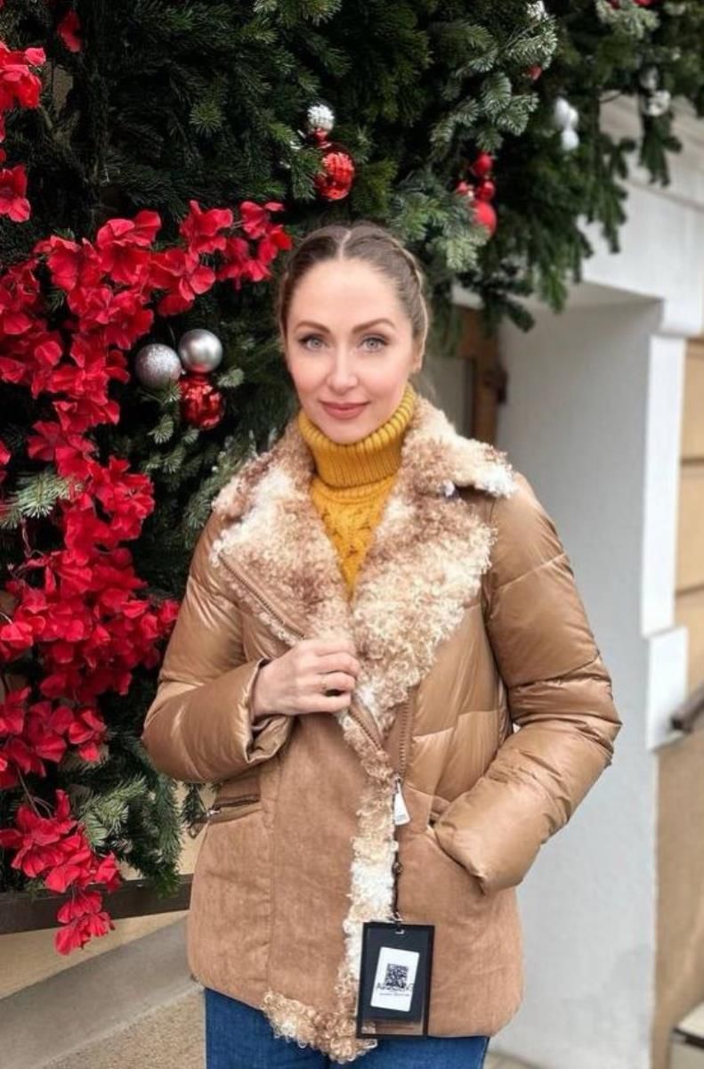 пуховик кофейный с мехом барашка